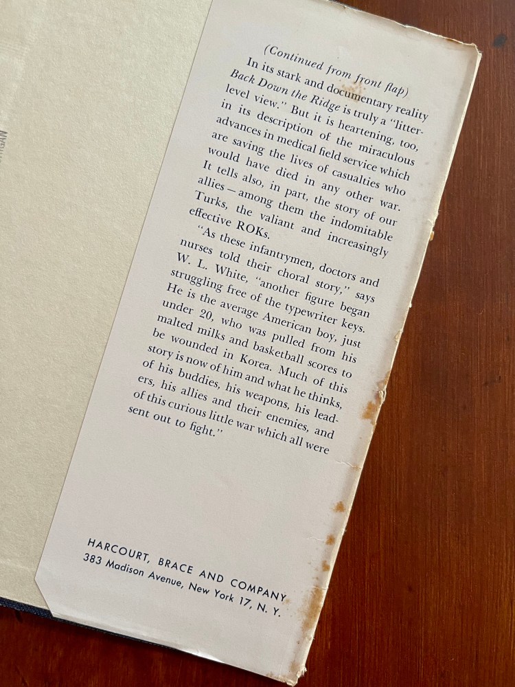 White, W. L. Back Down the Ridge. New York: Harcourt, Brace and Company, 1953.