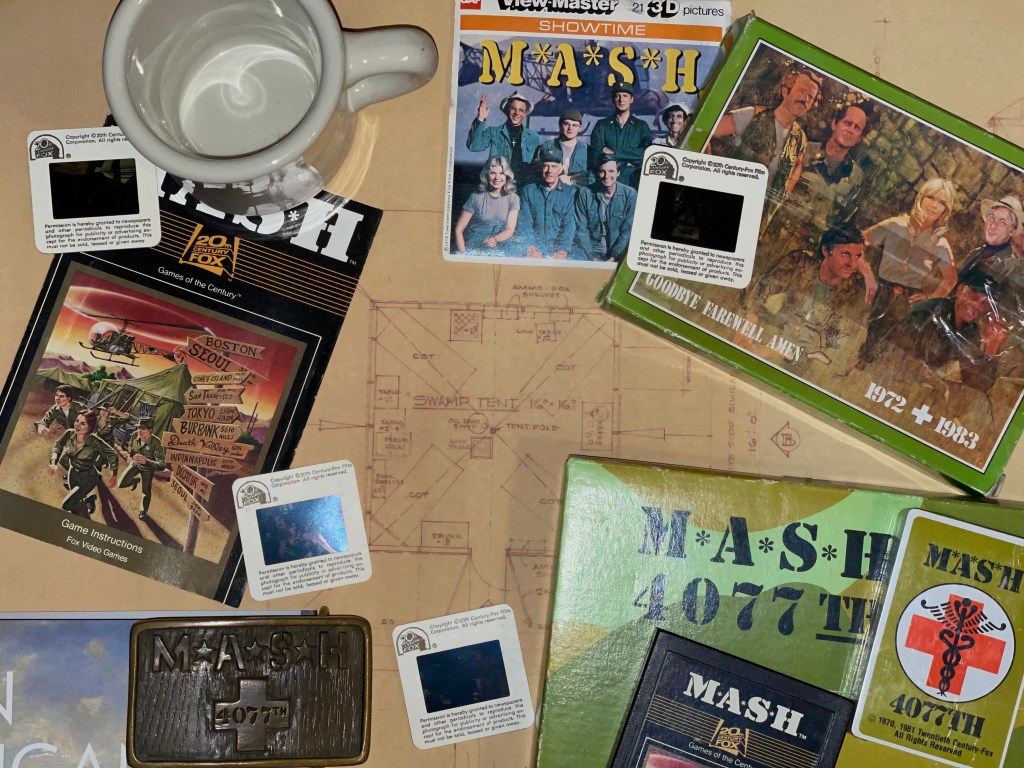 The photo above was taken last week and is of several items from the collection that I have recently rediscovered and assembled. After fifteen years, I find that I have stored objects in locations that I have forgotten, but everything is coming back out into the light (literally)! There are a lot of exciting posts coming, so please continue to follow along as we learn more about M*A*S*H together.