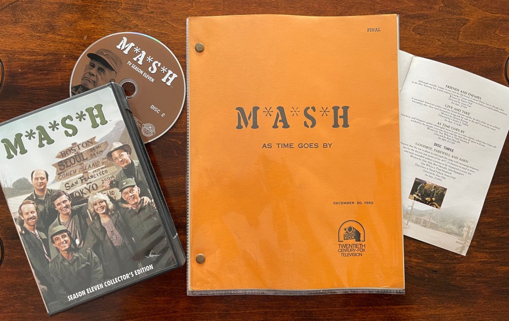 As we kick off 2022 and the 50th anniversary of M*A*S*H, I thought it would be best to spend January looking back at how the series wrapped in January 1983. The episode “As Time Goes By” (11×15) was the final episode filmed and it was the final scene of this episode, burying a time capsule, that was captured by hundreds of press photographers and reporters that were on set (see some behind the scenes video from the final day, read the quotes from the actors after filming, and see Alan and Arlene Alda’s book from the final days of M*A*S*H). I have a copy of the script in my collection as well as copies of the Call Sheet for that final day. Let’s review both and see how the penultimate episode of the series compares to the written script.