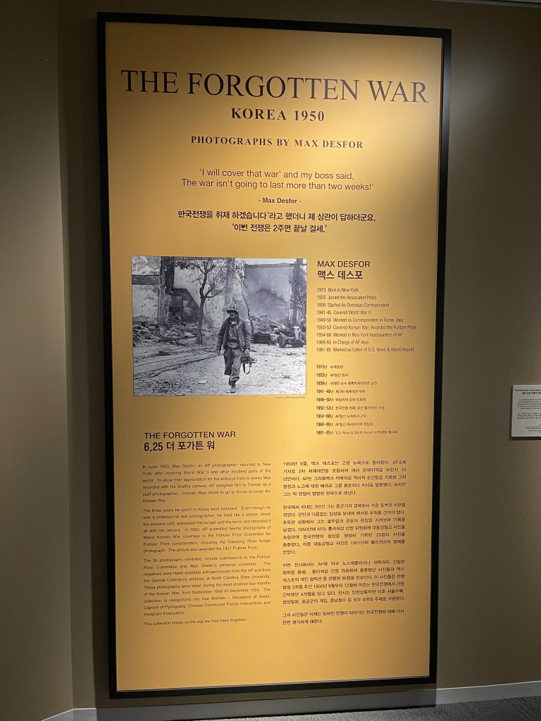 My primary purpose for visiting the Truman library was to see this exhibit. The early years of the Korean War were rough for the Korean people as the North Korean army pushed deep into South Korea. This generated a refugee crisis, much like we see today in Ukraine. Photographer Max Desfor was sent to Korea to cover the early months of the war, and many believed the war would be over quickly. Of course, we know that the war would become a proxy fight between the United States, USSR, and China. Desfor captured the war as the US and United Nations forces entered Korea and began pushing the North Korean army back to the 38th parallel.