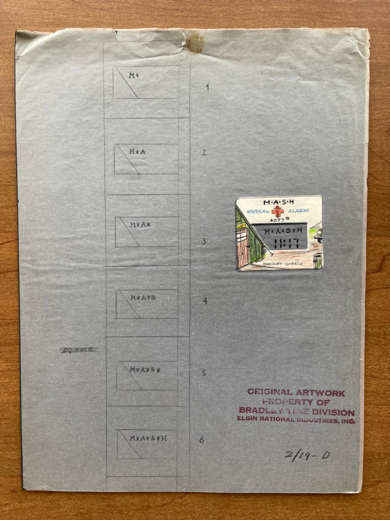 M*A*S*H has spun off countless licensed products over the last fifty years, and it isn’t too often you get to see the finished products along with some of the documentation from the development process. This week, let’s take a look at two watches produced by Bradley Time Division (at the time part of Elgin). We will also explore letters between Bradley and Twentieth Century Fox as well as some concept drawings. I love watches, so finding a M*A*S*H watch really caught my attention. Let’s take a look!