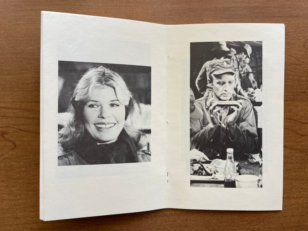 The middle of the book contains black and white photos of each cast member (minus Major Winchester since he didn’t appear until season six). Then, at the back of the book, there is a list of awards the series and cast won each year. Again, this was likely taken from press material provided by 20th Century Fox Television or CBS, but it is one of the earliest lists I have seen. And it is pretty accurate! I have a copy of a later syndication kit, and there are some errors in the episode descriptions (I will write a post about those at some point the future). In my review, I didn’t find any glaring errors, but I didn’t go through it with a fine tooth comb and compare it to the end credits or IMDb.
