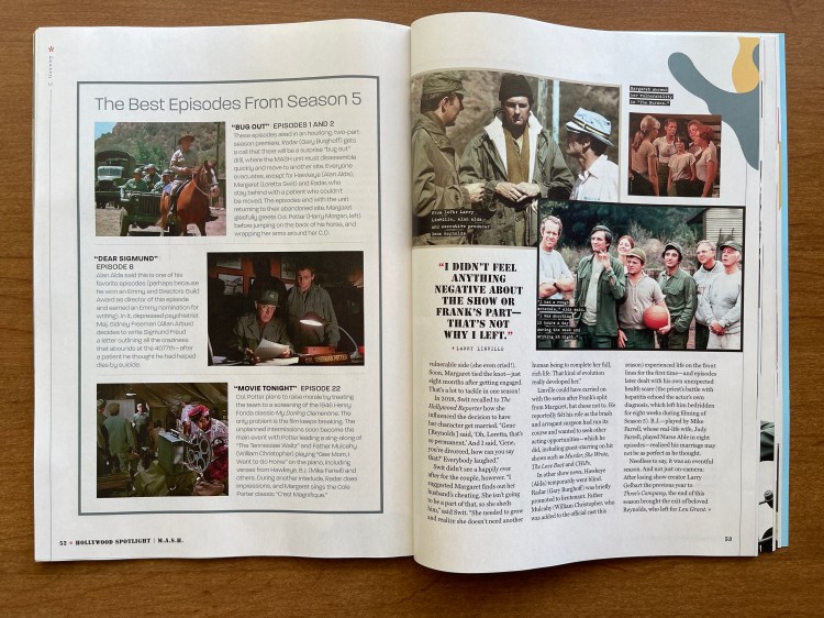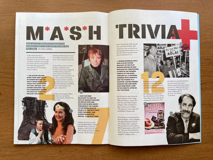 The Life magazine consisted of long form articles about M*A*S*H, the actors, and its legacy. It felt like a typical Life magazine with well written articles. It is not that The Ultimate Guide to M*A*S*H doesn’t have good articles, it does, but it feels like it was written for fans. The articles are far more approachable, scattered throughout the issue, and they cover some great topics. The first article in the magazine celebrates the 50th anniversary and serves as an introduction. Then, an article reviews how M*A*S*H began by discussing the novel, Robert Altman film, and the adaptation to television. There are two articles that discuss how the show’s creators used actual Korean War veterans’ stories to craft scripts and ensure that the series honored those who served in the war. Finally, an article towards the end discusses the legacy of the series and why it is still relevant 50 years later. Each article is well written and are well worth the time.