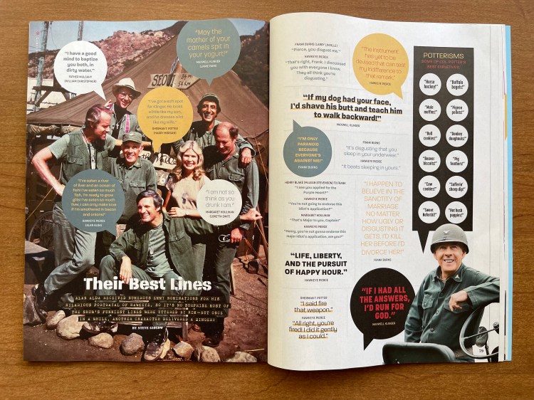 A few months ago, I reviewed the Life magazine that was released to celebrate the 50th anniversary of M*A*S*H. Earlier this month, I went to my local bookstore and was pleasantly surprised to see this magazine on the rack! I picked up several copies, and decided to make it one of my August posts since this issue is on newsstands now. The most obvious question is, how different is this magazine from the one released by Life? After reading it, I can say that it is completely different, and in fact, I prefer this magazine over the other. But before I discuss how I came to that conclusion, let’s see what makes this magazine special.