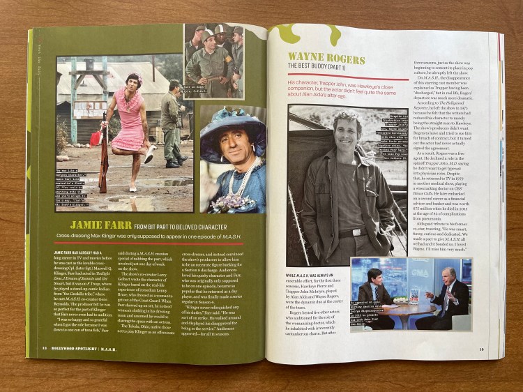 One area where this magazine and the Life magazine are equally matched is with the information they provide about the characters and actors in the series. Both spend a fair amount of time discussing the key members of the cast. But The Ultimate Guide to M*A*S*H takes things a step further. There are some features in this magazine that I really enjoyed such as the best and worst romances, the actors who served in the military, guest stars, the best lines from the series, and a where are they now article that also includes an in memoriam for those actors who have passed away. This magazine really does a great job of honoring the characters of the series and the actors who played them.