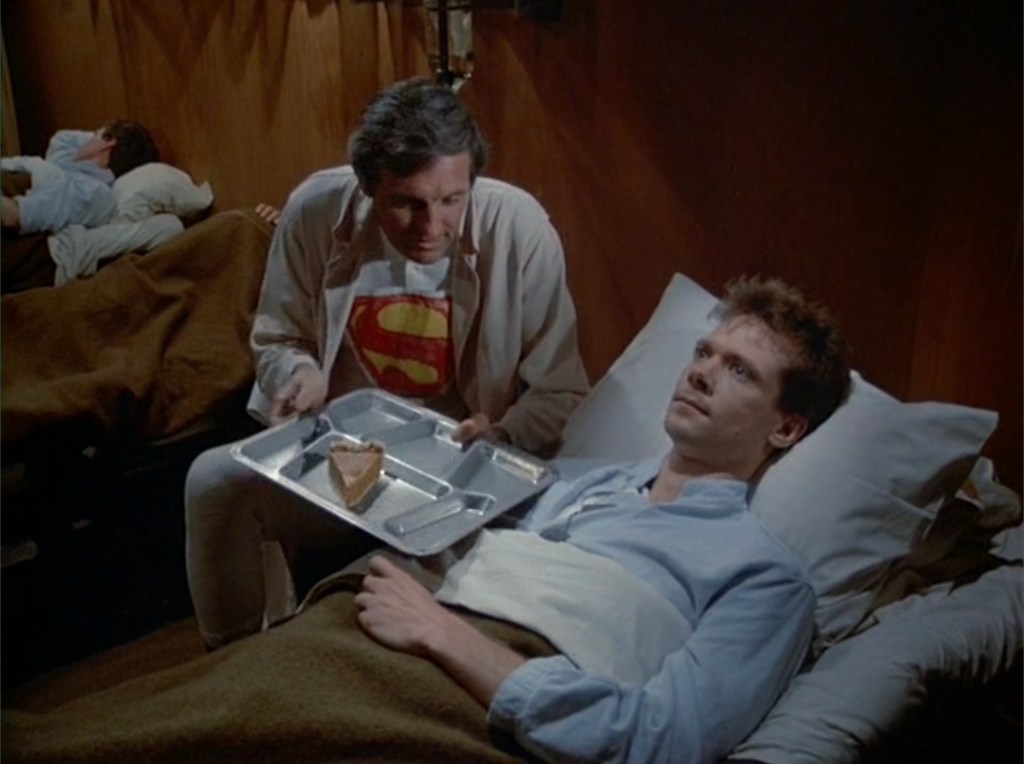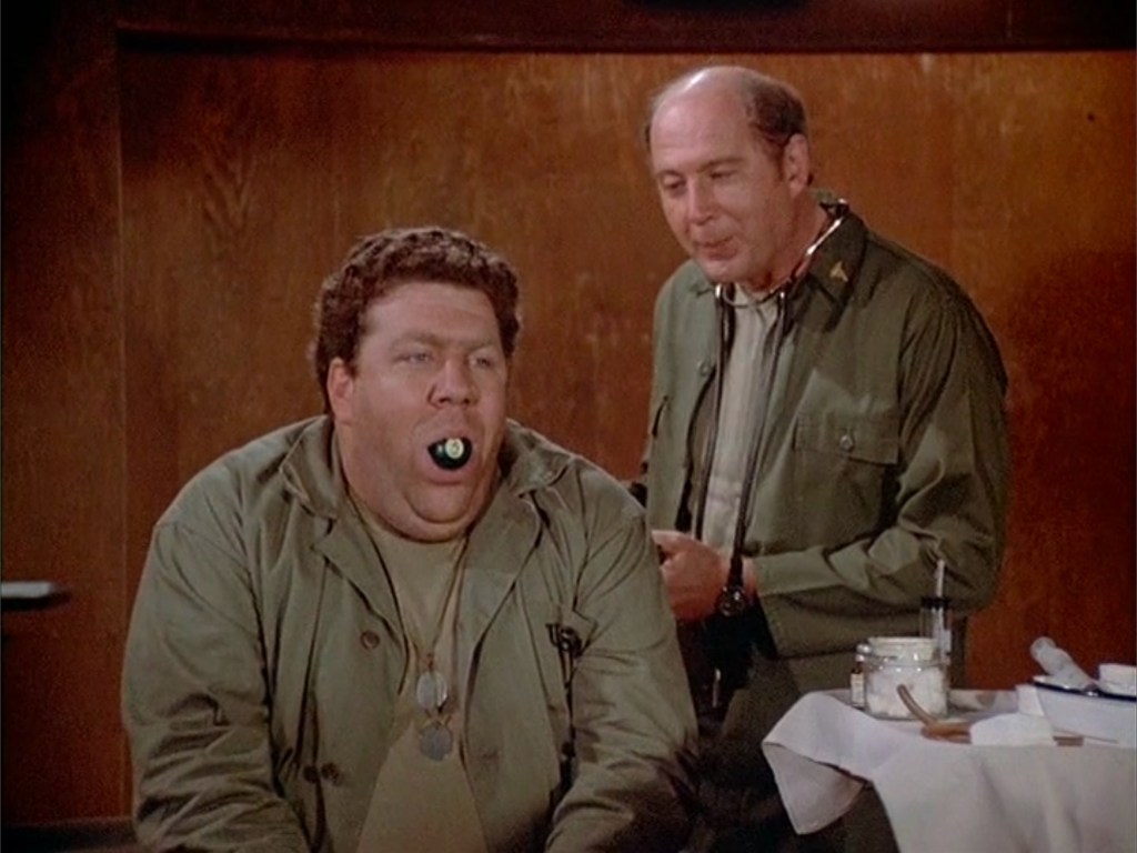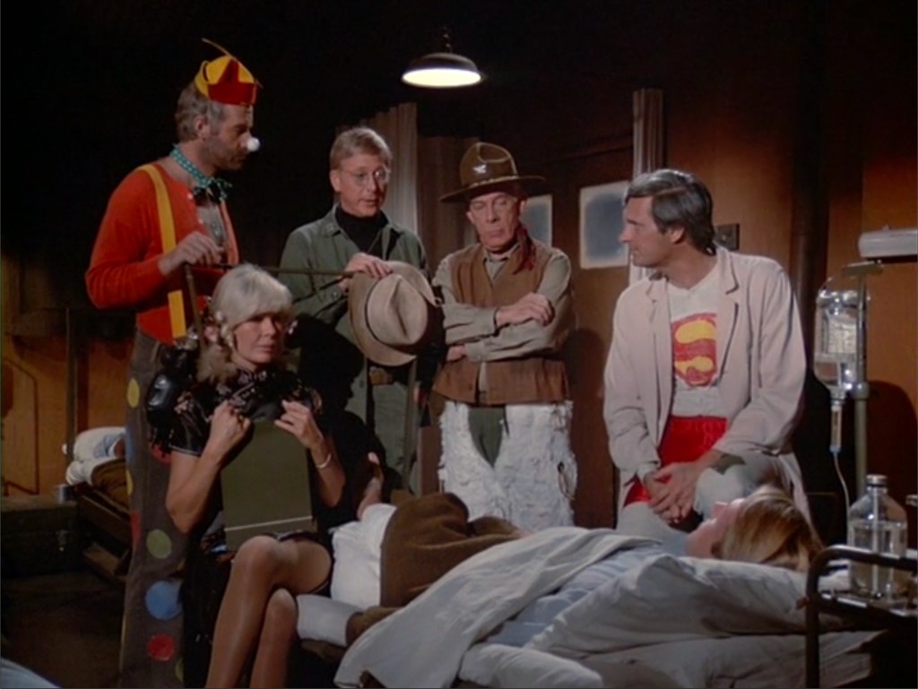 Overall, the episode follows the script as written aside from little word changes here and there. Another note I made while watching this episode was that the acting by Richard Lineback, who played Private Scala, is compelling. The way he tells the story of what happened to his buddies is very moving. Not only the emotion he puts into it, but the timing he has as he delivers the lines. It is very well done. As is the whole episode in my opinion. I like the Halloween theme as it was something that M*A*S*H hadn’t done yet by season 11.