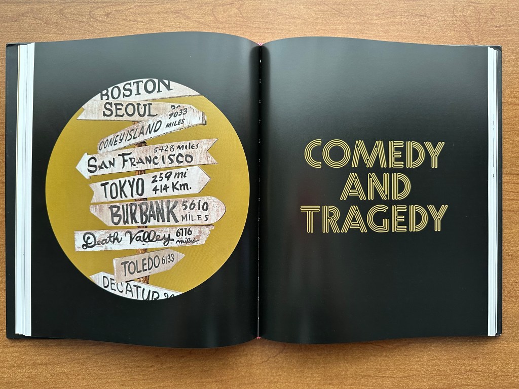 Of course, the M*A*S*H signpost is given a prominent spotlight, and is actually featured twice! It is first featured on the section divider for the “Comedy and Tragedy ” portion of the book. This is the section in which M*A*S*H is discussed, and the signpost is highlighted along with a photo of the later seasons’ cast with the signpost. The caption for the signpost says, “This signpost referenced the hometown of the characters on the 1970s sitcom M*A*S*H. Based on a film of the same name, the show was set during the Korean War and followed the comedic antics of the staff at the 4077th Mobile Army Surgical Hospital, or MASH. Through its 1950s lens, the popular program used humor to address the horrors of war and leveled criticisms about the Vietnam War, hoping the nation ‘bind up the wounds’ from that conflict over the course of its eleven-year run.”