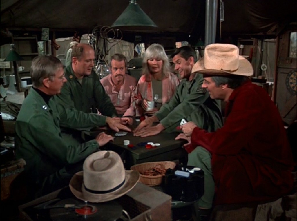 The episode opens with Klinger rushing to finish his work so he can join a big poker game. The mail brings some new Army forms, and Col. Potter reminds him that he promised to update to the new forms, so the poker game is out. That quickly backfires when Potter receives a driving citation and has to take traffic classes. He tries to get out of it, but Klinger reminds him that a poker game isn’t an excuse to put off driving school. The driving class is taught by Rizzo, and when Potter fails the written test, Klinger (who is ready to join the poker game after finishing the forms) has to help Potter study. Meanwhile, the mail brought B.J. some delicious cookies from Peg and a letter that has him upset. At the poker game, he gambles to the extreme, and even extends his gambling to hustling pin-ball in the Officers’ Club. After Margaret points out that B.J. should not be upset about his wife taking a part time job to help pay the mortgage, he calms down and returns to being his usual self.