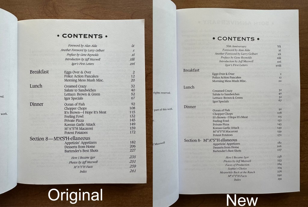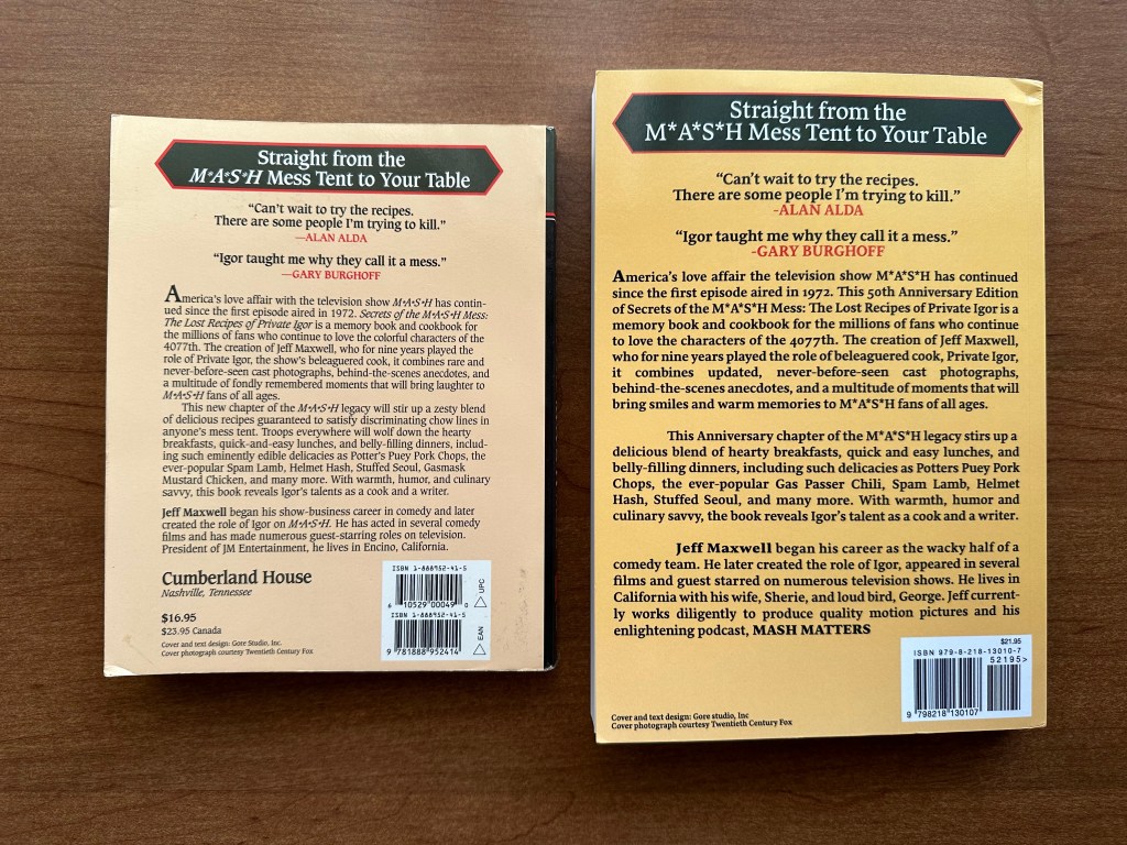 With 29 more pages, 60+ new photos, three new chapters, a new introduction by Maxwell for the M*A*S*H 50th anniversary, and several new recipes, the updated edition of Secrets of the M*A*S*H Mess: The Lost Recipes of Private Igor is a must own for any M*A*S*H fan. Whether you have a copy of the original, or you are going to buy your first copy, this is a great edition of the book with fun photos, stories, and recipes!