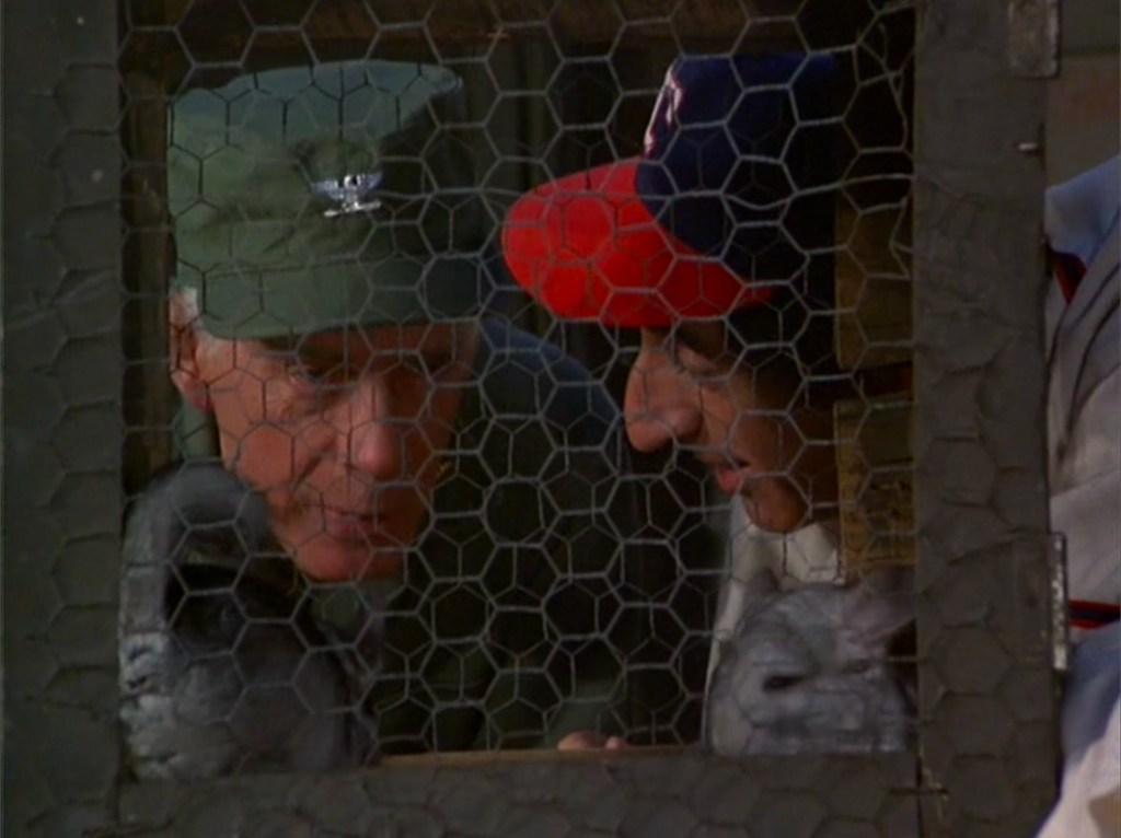 It is rainy and dreary at the 4077th, and everyone is in low spirits until Hawkeye receives a set of letters from a fourth grade class in Crabapple Cove, Maine. He divides them up, and they each respond to letters. We see each character read and respond to a letter with a flashback to something that happened at the unit. Father Mulcahy recounts helping a dog with a drinking problem, Klinger writes about his unsuccessful attempt to breed chinchillas, Margaret writes about comforting the wounded and dying, Potter tells a story about nearly breaking the camp basketball free throw record, and B.J. recalls the Army sending a lawyer instead of a doctor as a temporary replacement for Charles. Hawkeye receives a difficult letter from a child whose brother was treated by a doctor, then sent back to die. He struggles to answer, but eventually does. The best responses come from Charles! At first, he didn’t want to take part, but then he became mean spirited in his responses…until he gets a letter from a girl who sends a birch leaf. The memory of “Autumn in New England” even softens Charles who sends a touching thank you letter to the fourth grader who sent it.