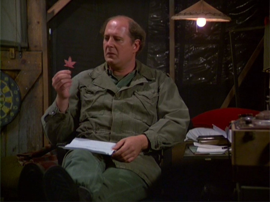 As we begin October, fall is finally upon us. I spent a few days thinking about an episode to review this month, then I remembered one Charles Emerson Winchester III line: “Autumn in New England.” That line comes from the episode “Letters” (09×02). In it, the camp responds to letters from kids. Charles is not really the kindest pen-pal, but when a girl sends a fall leaf, he utters that line, “Autumn in New England,” before sending a truly heartfelt response. I chose this episode because of that one line from Charles, but then I was even more excited once I saw that the script belonged to wardrobe director Albert Frankel. So, let’s begin!