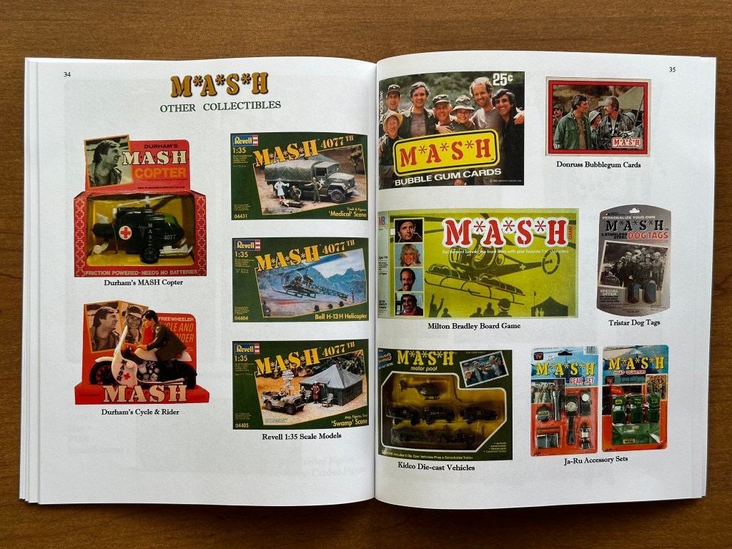 M*A*S*H collectors and toy collectors alike will appreciate this book featuring the toys and action figures that were licensed by Twentieth Century Fox in the 1970s and 1980s. The book presents a full spread on most objects and includes color photos, information, and checklists to use for your own collection. This book is self-published, but the attention to detail and photography make it a must own for M*A*S*H collectors.