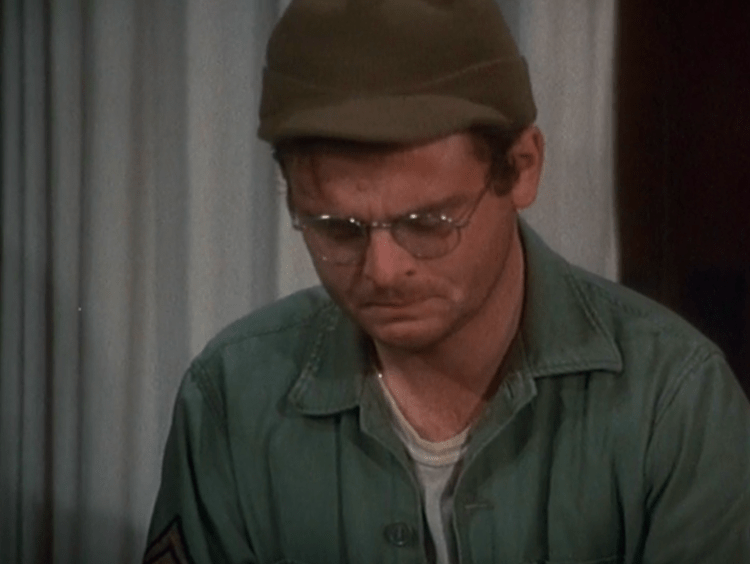 Radar interrupts a session in the O.R. to delivery some news to Col. Henry Blake…he’s going home! After the session ends, he begins making plans to go home and calls his wife to let her know that he will be coming home. Meanwhile, Margaret and Frank are happy because Frank will be taking over command of the 4077th. On Henry’s final night, Hawkeye, Trapper, and Radar throw Henry a party at Rosie’s Bar. During the celebration, they “drum him out” of the military and they give him a gift, a new suit. The next day, Frank has the full camp fall in to say goodbye to Henry. He has heartfelt goodbyes with Hawkeye, Trapper, Father Mulcahy, and Klinger. After kissing Margaret, he heads up to the helicopter pad to fly out. He gives Radar a hug before getting into the helicopter, and we see everyone wave goodbye as he flies away. Later in O.R., Radar once again enters, but this time with the news Henry’s plane was shot down over the Sea of Japan and no one survived.