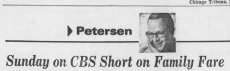 - Peterson, Clarence. “Sunday on CBS Short on Family Fare.” Chicago Tribune. September 18, 1972, 3-13.