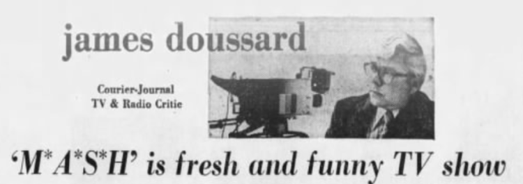 - Doussard, James. “M*A*S*H is Fresh and Funny TV Show.” The Courier-Journal. September 18, 1972, B2.