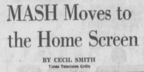 - Smith, Cecil. “M*A*S*H Moves to the Home Screen.” The Los Angeles Times. September 18, 1972, 19.