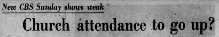 - Associated Press. “Church Attendance to Go Up?” Anderson Daily Bulletin. September 18, 1972, 8.