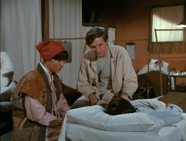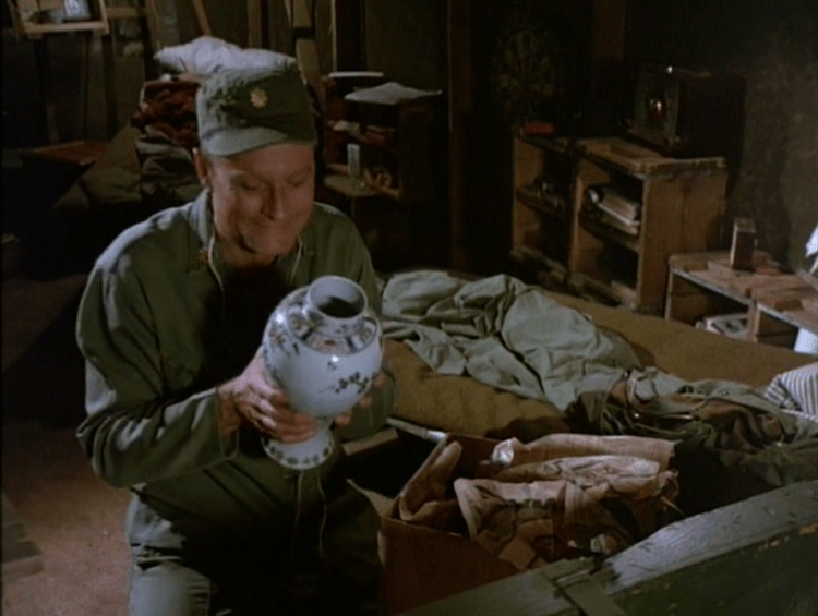 It’s the multiple, separate souvenirs storylines that feel inconsistent. The wounded patient who wants to keep the bullet that didn’t kill him is understandable. I don’t agree with B.J.’s contempt for that. No one was hurt in that situation but the man who was wounded, so him keeping the bullet that wounded is fairly common. Unfortunately, Frank buying stolen artwork from a country in which a foreign Army is stationed is another common occurrence. It happened in both world wars, and there are stories of it occurring in the 2000s in both Afghanistan and Iraq. It is deplorable that national treasures are looted then sold on the blackmarket. If this episode stopped at these storylines (Klinger, Margaret/Frank, the wounded soldier keeping the bullet, and Frank buying a stolen vase), I think the episode would have worked better. The additional storyline of Stratton goes a few steps further. He has kids collect the brass shells, taking advantage of their poverty, then has them made into other objects that he sells. This is certainly something that happened in war time, but how is he having the brass made into something else? When does he have time? He is a helicopter pilot in a war zone. I also have a hard time believing some of the lines from Hawkeye or that Margaret would punch a man for selling souvenirs. Those scenes don’t feel authentic to the characters. I agree that the practice of buying and selling “war souvenirs” is wrong, especially when it puts children in danger because they are desperate for money or lotting national treasures. But there are too many storylines in this episode that didn’t fit well together.