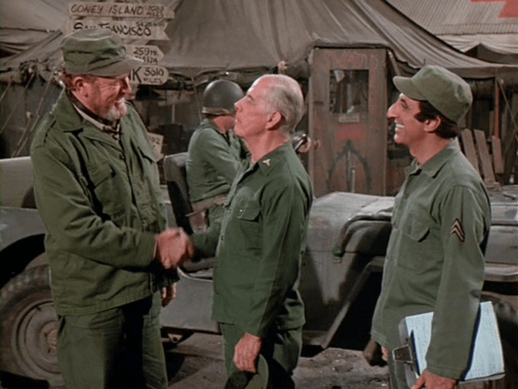 By the end of the series, M*A*S*H became more episodic, so the storylines really didn’t flow from one episode to the next. Seasons four and five had a great flow to them; however, by this point in the series, you’ll have an episode where everyone at the 4077th is freezing followed by one where they are boiling hot. After 200+ episodes, the writers were looking for new stories, and it had to have been a challenge since there are only so many things you do with MASH unit doctors in a war that only last three years! Episodes like “Blood and Guts” are a unique twist on an episode we already saw. In season eight, we saw a war correspondent visit the 4077th with a very different outcome. So while the initial idea of “war correspondent visits the camp” in “Blood and Guts” and “War Co-Respondent” (08×23) may sound the same, the characters and the storyline is completely different. This was a fact of life in a MASH unit. The doctors and nurses were stuck there, so people would have come and gone all the time. Seeing how the same story can end differently each time is a unique twist, and one that only a long running television series can explore.