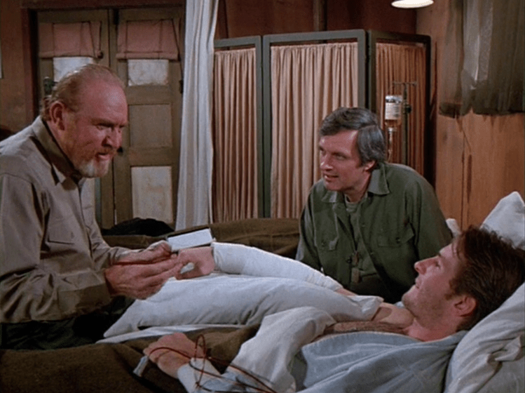 As we enter fall, I am beginning to run out seasonal based episodes to review each month! In 2025, though, I have been rewatching one season of M*A*S*H per month. For season ten, I looked through the list of episodes and picked one at random. The winner was “Blood and Guts” (10×12). I knew the episode featured a war corespondent and how the episode ended, but I couldn’t remember the reason that he visited the 4077th. So I pulled out the script, and I was happy to find that the copy of the script for this episode in the collection has a few extras. As part of the rewatch this year, I have had some time to think about M*A*S*H from a different perspective. As I have posted on this site for the last few years, I’ve read memoirs by actors and writers, and it’s interesting how everything has really come together for me more now than ever before. Perhaps part of that is me being older, but I think the biggest contributor is the fact that I have read more widely about how and the why the series was created. M*A*S*H did not glorify war, and it often mocked the absurdity of it. After rewatching this episode, the message at its core is the central tenant of M*A*S*H.