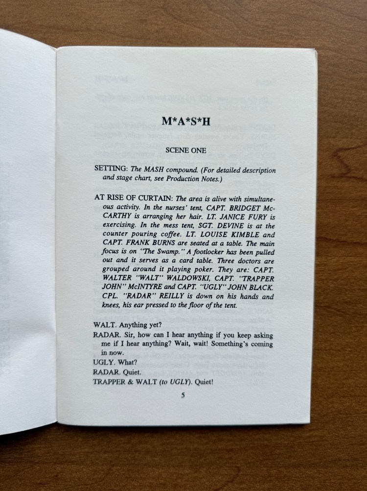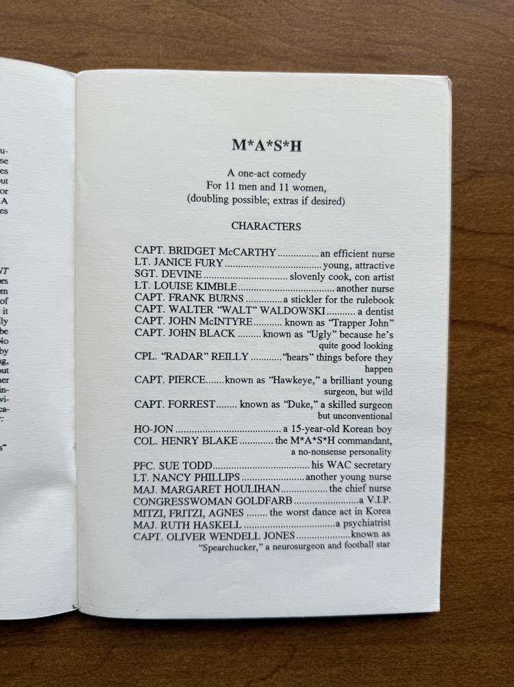 One thought on “From the M*A*S*H Library 49: M*A*S*H Theater Play”