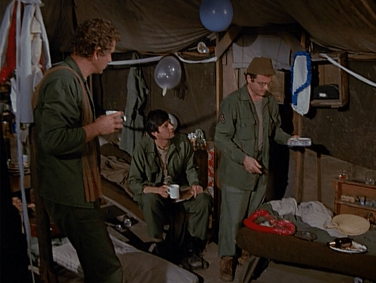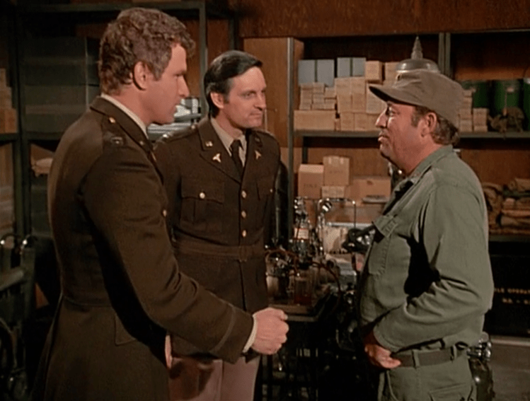 After spending the last eight months with the later seasons of M*A*S*H, it was great to see Henry, Trapper, and Radar again! There are some things that stood out to me, however. The laugh track is much more prevalent in the early episodes. By the later seasons, it is used far less frequently. It was pretty distracting at first because I wasn’t used to hearing it. I also noticed that Margaret doesn’t appear in this episode. It is possible that Loretta Swit had other commitments. As I followed along in the script, there were several changes between the script and final episode worth noting. Before Hawkeye and Trapper wake up, the script has a PA announcement that woke them (page 1). The scene in the Swamp between Hawkeye, Trapper, and Frank was originally a few lines longer (page 6). When Henry tells Hawkeye and Trapper to dress up for their visit with the Major, the scene included a few additional lines (pages 20 – 21). The scene with Col. Lambert was a little longer in the script (page 27). And the script has a completely different tag in which Frank, Hawkeye, Trapper, and Owens use the incubator for cultures (pages 35 – 36).