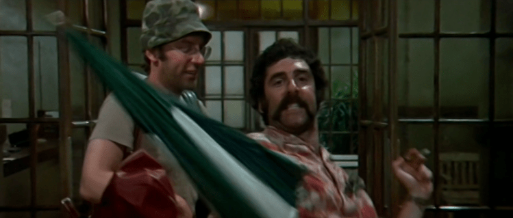 If you’ve read the original Hooker novel, then the movie will be familiar. Most of the stories from the novel are in the film. But while rewatching, there were several things that I had forgotten. Hawkeye and Duke both arrive at the 4077th before Trapper and Margaret. Whether this was true in the series, we never find out. There are several similarities to series. The relationships between the surgeons and nurses, especially Hawkeye, are a common thread in both. So is going to Japan for R&R and golf. One of the biggest differences between the two is how infrequently Frank is featured in the movie. He is quickly disposed with after Trapper punches him, and Frank attacks Hawkeye. In the movie and series, Frank is a one dimensional character, and that is what made it more difficult to deal with Frank as the series went on. There is one interesting side note in that Captain Ray Poss flew (and owned) the helicopters in both the movie and series. In his book, he discusses how the crashed helicopter shown in the film was real. They really did crash a helicopter during production. Thankfully no one was hurt, and Altman decided to keep the crashed helicopter in the movie.