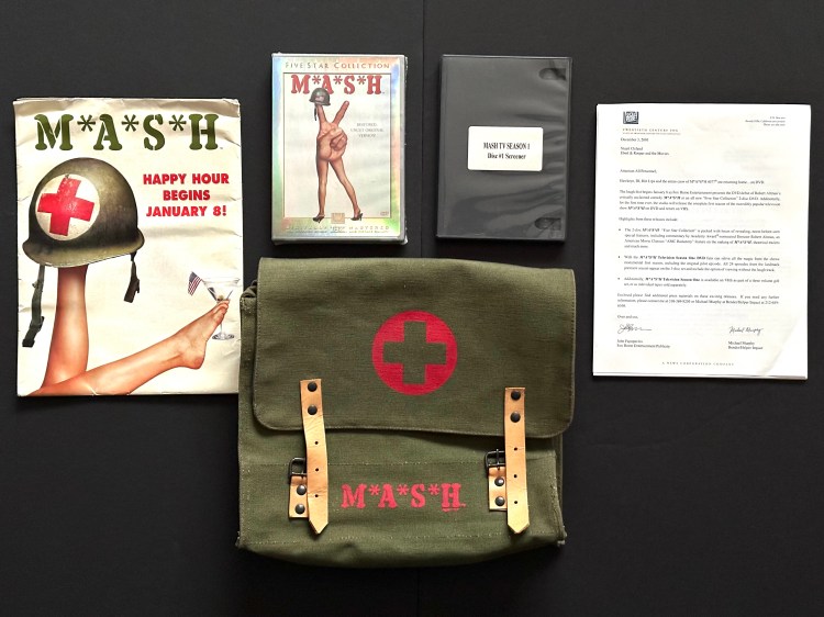 When someone asks me when The M*A*S*H Historian Collection began, I typically say that it started in 2007 with a set of scripts. That is technically true, but there were M*A*S*H items that I purchased before the scripts. In 2002, 20th Century Fox began to release each season of M*A*S*H on DVD. Every six months, a new DVD set was released, for the next five and half years, I collected the DVDs of my favorite show until I had the complete series. I was not alone as fans still discuss the benefits of owning the DVDs, including the ability to turn off the laugh track. For me, this was the first time I had ever collected a series. Up to that point, I had to rely on my local Fox affiliate and the cable network FX to watch my favorite show. The DVDs brought M*A*S*H into the homes of millions and allowed new generations to discover the show. When it was announced that M*A*S*H was being released on DVD, 20th Century Fox Home Entertainment sent out a press kit announcing the release of the series and the re-release of the original M*A*S*H film from 1970. Let’s take a deeper look at this press kit!