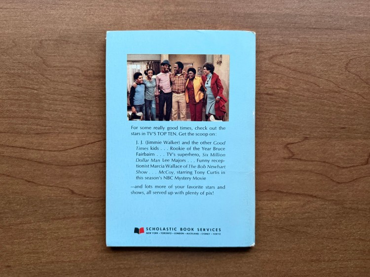My first job was working for Scholastic, but I knew of the company before I started working for them in 2004. Most kids and parents are familiar with the Scholastic Book Fairs and Book Clubs, and those divisions go back over half a century. What Scholastic was initially known for, besides publishing children’s books, was printing magazines that were distributed in schools. Scholastic’s magazines and books are made for children, and this was the when TV’s Top Ten: Shows and Their Stars was written by Peggy Herz. In 1976, this book was offered through a classroom Book Club for kids to purchase and learn more about the actors behind their favorite shows.