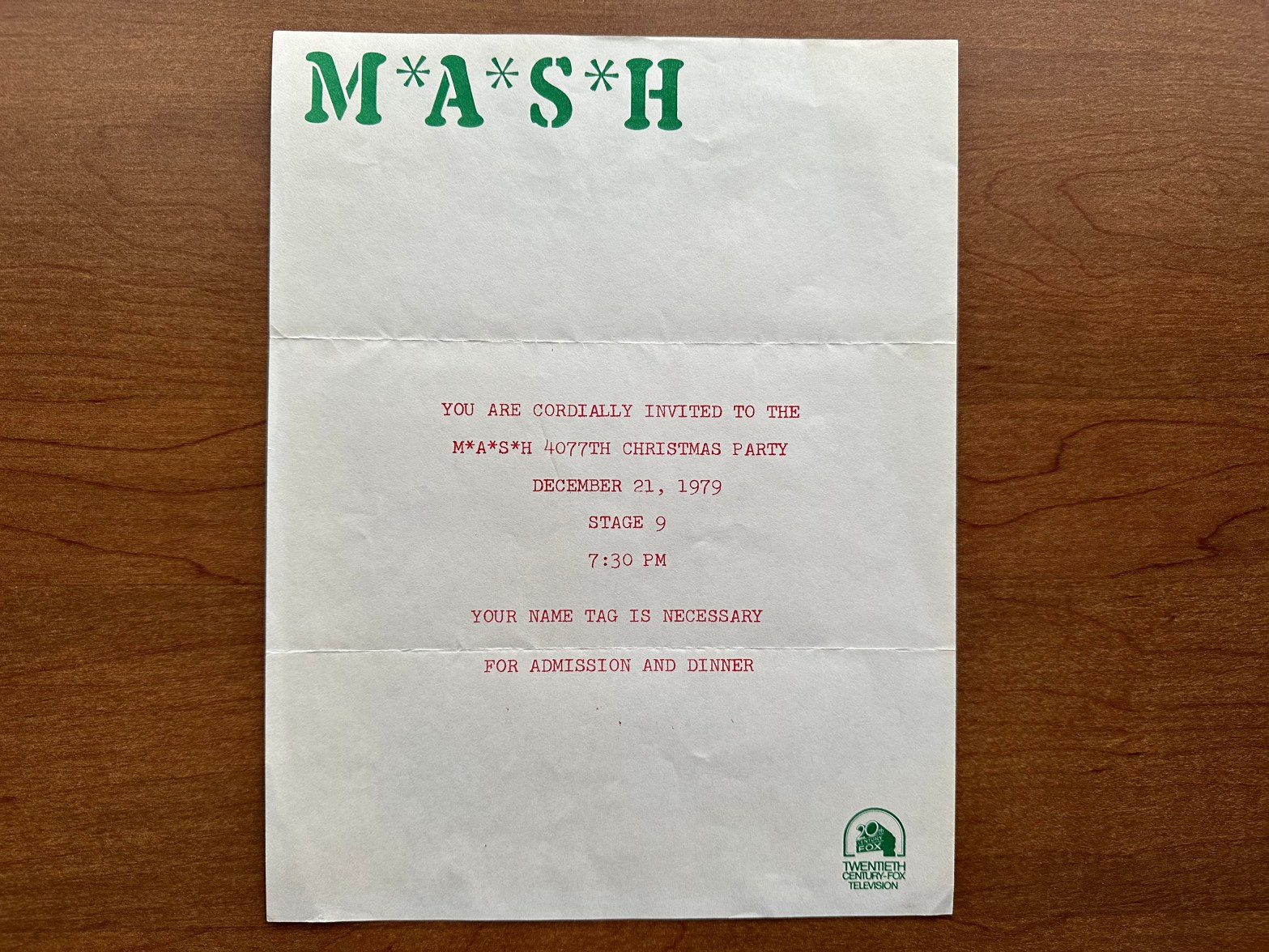Each year, the M*A*S*H cast and crew had a Christmas party. There would be food, an annual gift, and, I would assume, great time! According to this invitation from 1979, the Christmas party was held on December 21st on Stage 9. The invitation says that a “name tag is necessary for admission and dinner,” soContinue reading “MishM*A*S*H 15: 1979 M*A*S*H Christmas Party Invitation”