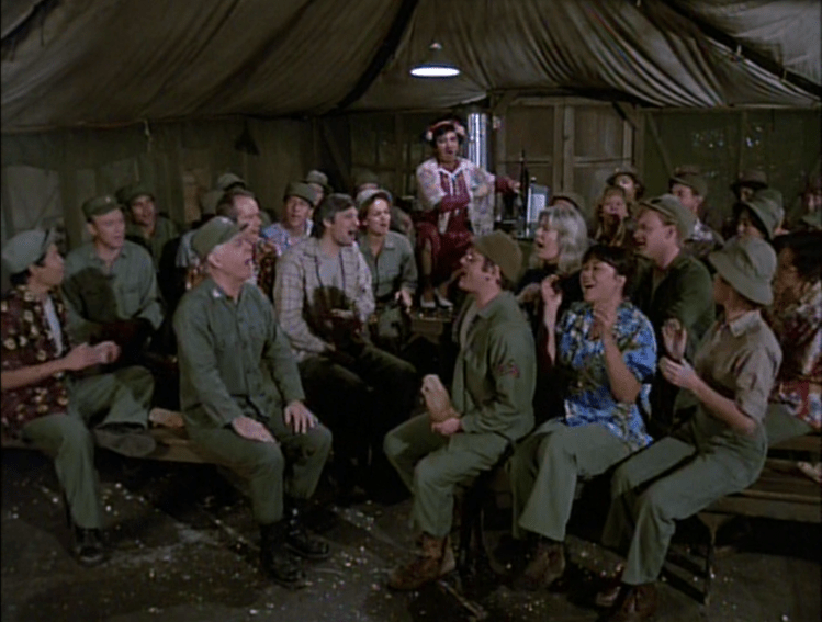 With the heat, the shortage of supplies, and the lack of water, everyone is upset. The nurses make fudge in their tent and seem to be getting on Margaret’s nerves. Meanwhile, one of the nurse’s husband shows up and Hawkeye and BJ set them up in Margaret’s tent for a night. As a distraction, Hawkeye and BJ try to get Frank to keep bothering Margaret. Margaret has to sleep with the nurses.